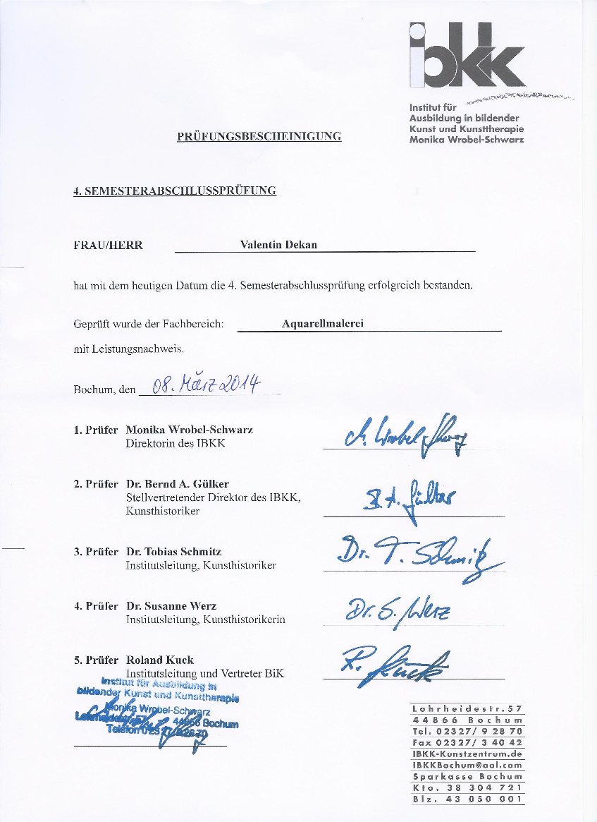 seit Dezember 2011 Studium der Malerei und Grafik bei ibkk Bochum